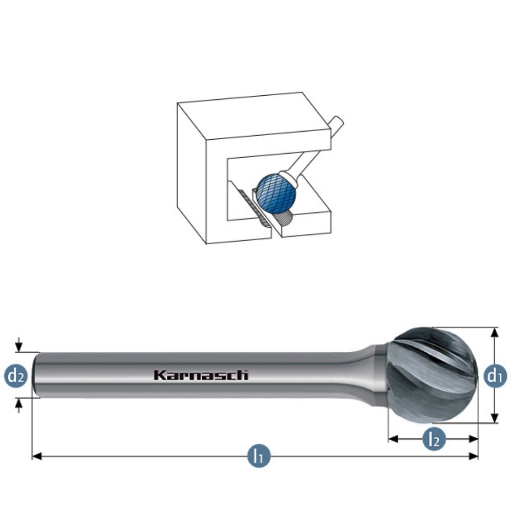 Produktinformationen "HM Frässtift, Ø=2,0-25mm, Serie 113035, Kugelform, unbeschichtet HP7"
