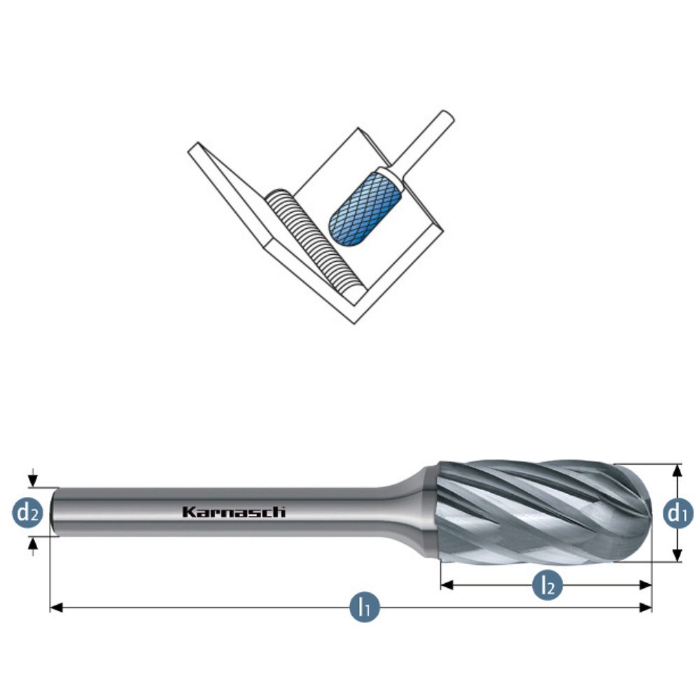 Hartmetall-Frässtift, WRC, Walzenrundform, HP-7 Verzahnung, unbeschichtet.