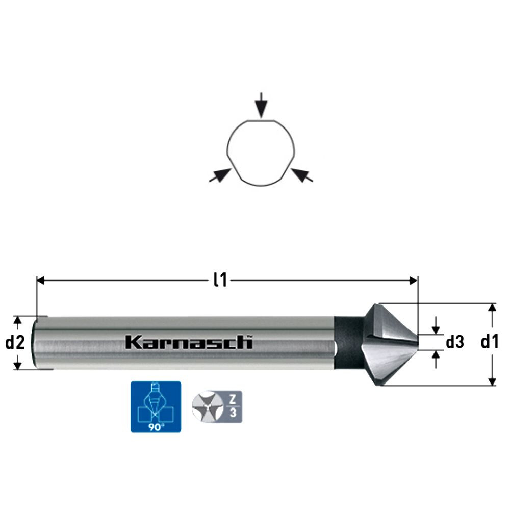 Produktinformationen "Kegelsenker 90°, Senker, HSS-XE, RAPID-CUT 3-Flächen-Schaft, DIN 335, Ø d1=6,3-31mm"