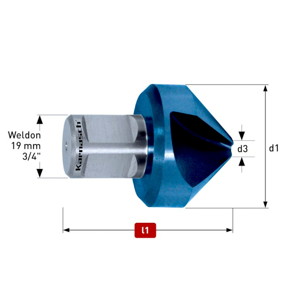Produktinformationen "Kegelsenker 90°, HSS-XE Blue-Tec beschichtet Weldonschaft, d1=25-40mm, "